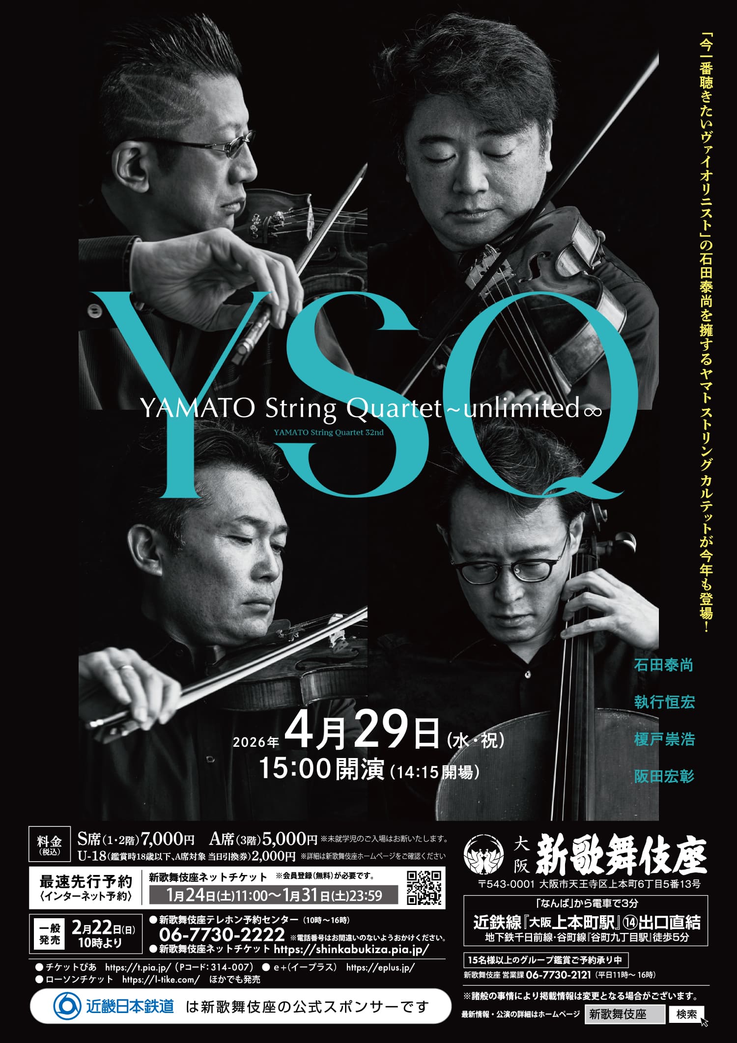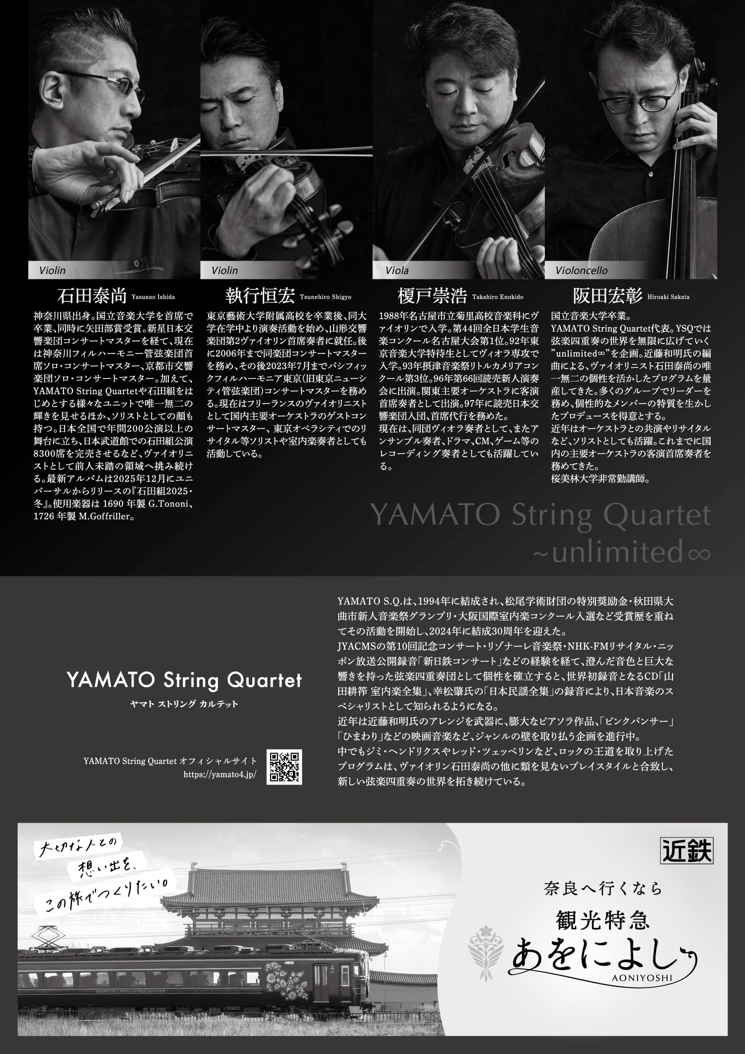 「今一番聴きたいヴァイオリニスト」の石田泰尚を擁するYAMATO String Quartetが今年も登場!